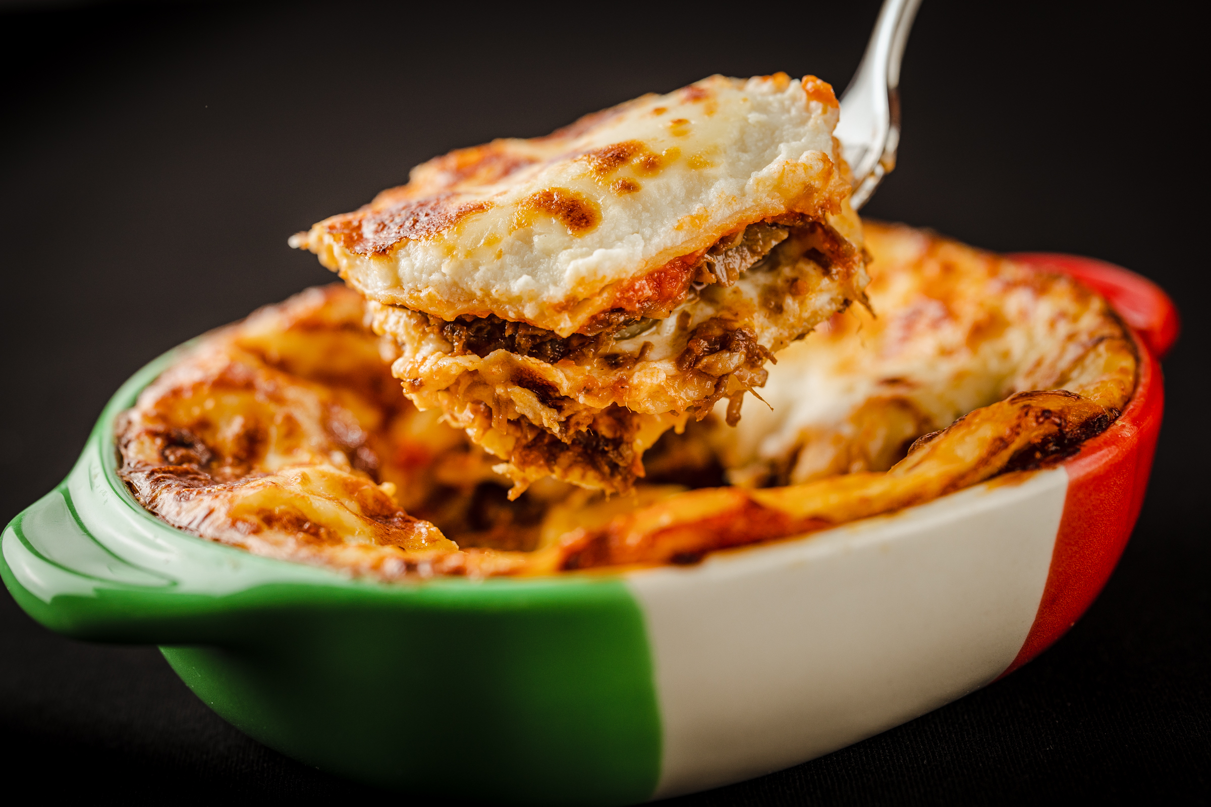 そのほか、ディナーコースでは本店や通信販売でも大人気メニュー、ラザーニャも登場。こちらは通称 ‟飲めるラザーニャ”とも呼ばれるファンの多い逸品。コンヴィヴィオ自慢のミートソース、パスタ、ベシャメルソースとのハーモニーが楽しめます。