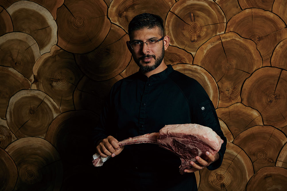 今年4月にオープンしたメインダイニング「エンバ・キョウト・チョップハウス」のシェフを務めるのは、アルゼンチン出身のセバスチャン・バルクデス氏。肉の塊を炭や薪で焼き上げる伝統料理、アサードの本場で生まれ育ったバルクデス氏は、中南米、アジア、中東のレストランやホテルを舞台にキャリアを重ねてきた。