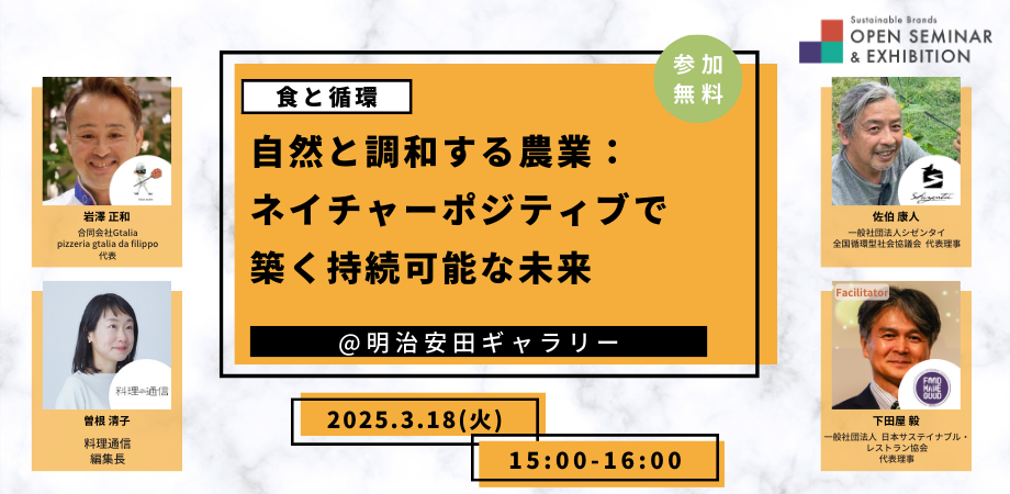 3月18日(火)・19日(水)の2日間に渡って開催される「サステナブル・ブランド国際会議2025東京・丸の内」に合わせ、明治安田ギャラリーにて参加無料のオープンセミナーが開催されます。