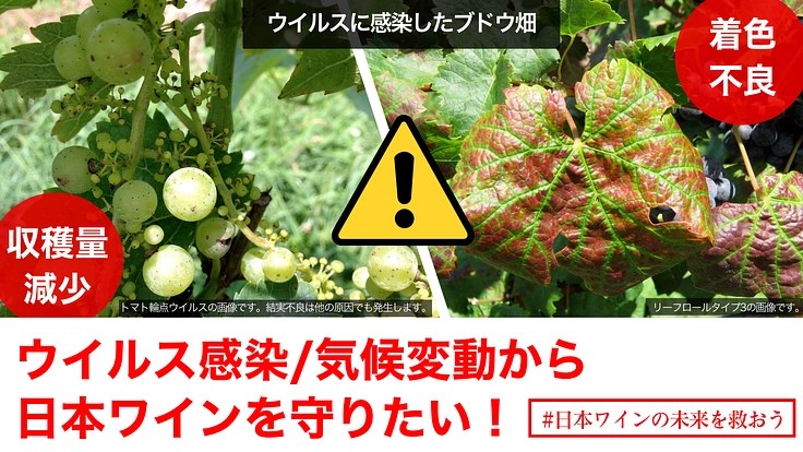 日本のブドウ畑の約50%の樹がウイルスに感染している (ヨーロッパの感染率は約20%と日本の2分の1以下) というデータもあり、放置すれば日本ワインの品質低下は避けられない。世界の主要ワイン産地では、ウイルスチェック済みの健全な苗木を使用することが一般的だが、日本ではその供給体制が整っていないため、病害のリスクを抱えたまま栽培が続けられているという現状がある。