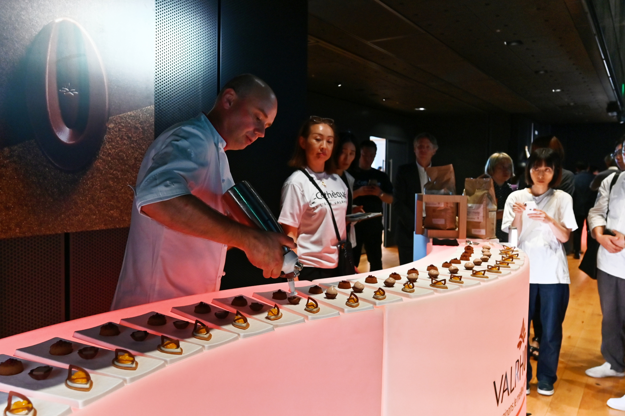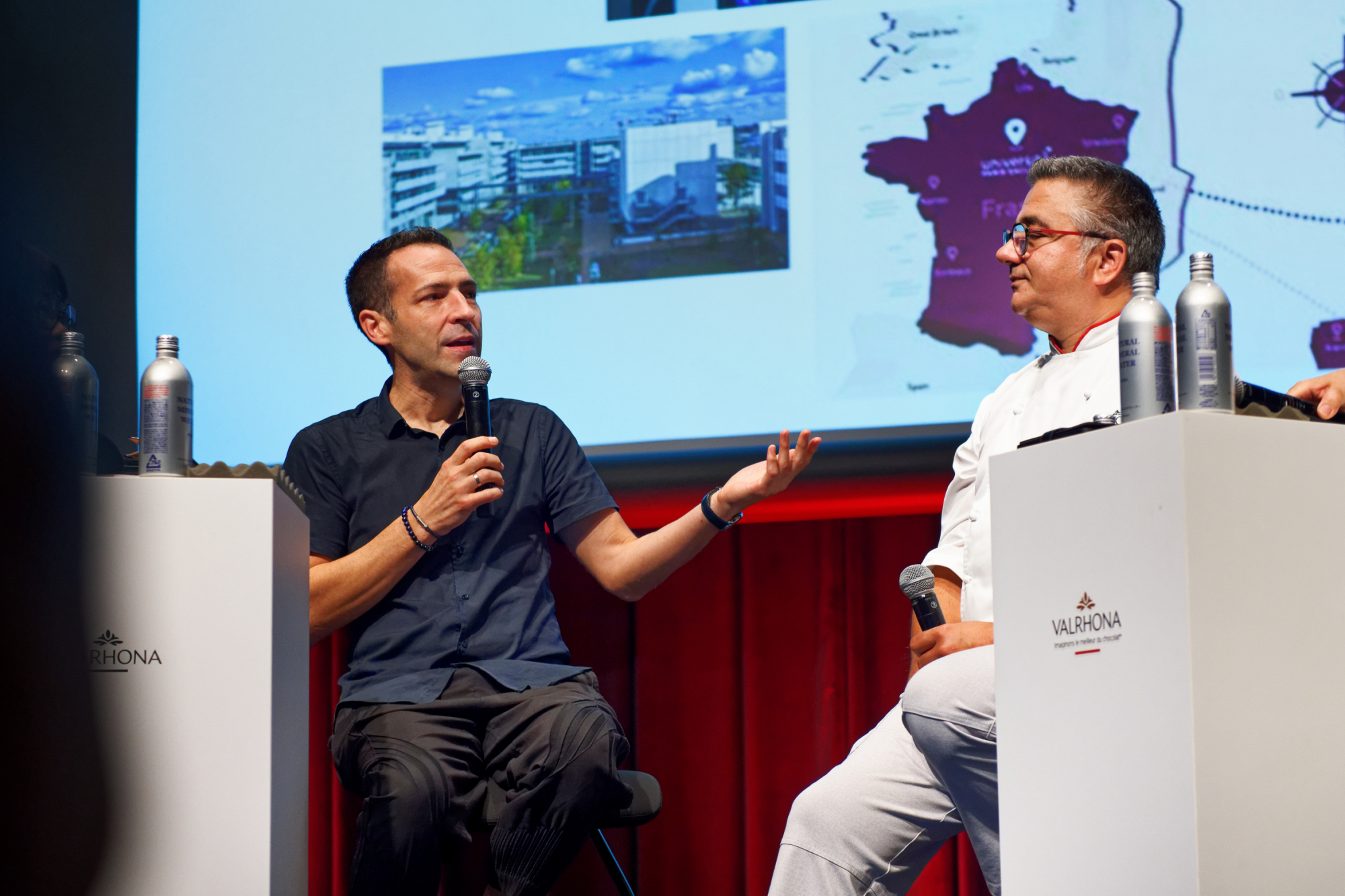 2回目である今年は、エコール・ヴァローナの創設者であり、書籍『グルマンディーズ・レゾネ(美節食)』の著者であるフレデリック・ボウ氏と、化学の視点から持続可能な食の在り方を探究する材料物理化学者ラファエル・オモン氏によるライブ講演に加え、ヴァローナ セレクションのビジョンや取組みの紹介、エコール・ヴァローナ 東京によるクリエイションが多数振舞われました。