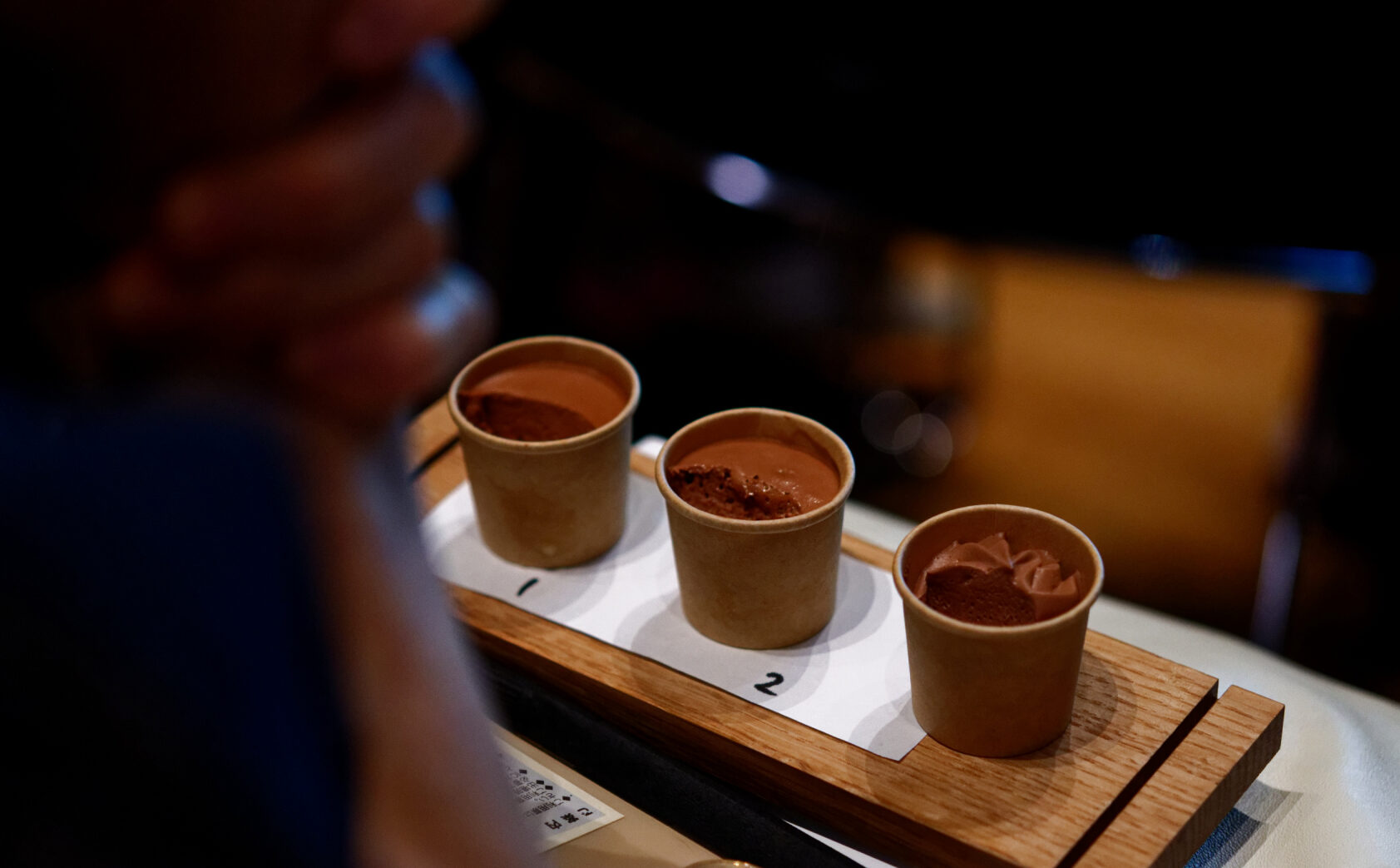 従来の卵や砂糖に代わる乳化・凝固素材を選ぶことで、「産地限定のチョコレートや香り高いプラリネなど、主役となる素材の個性をより生かすことが可能になります」とボウ氏。「『美節食』とは、あらゆる要素を最小限に抑えながらも、最大限の味覚的喜びを追求することなのです」と強調しました。