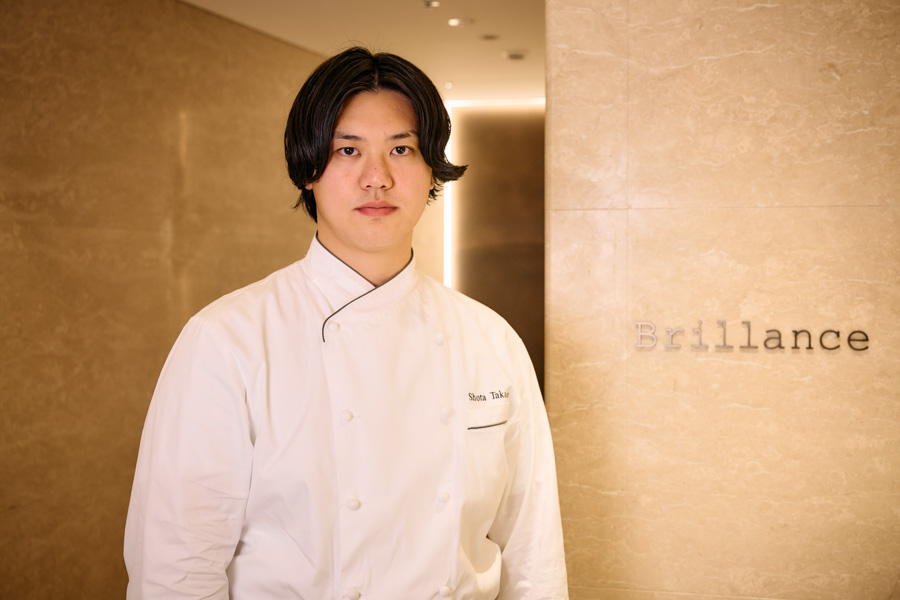 ゆったりとテーブル間をとったレストランフロアと個室からなる全24席のフレンチレストランの名前は「Brillance(ブリアンス)」。シェフに立つ髙瀬奨太さんは、カンテサンスで4年修業後、岸田シェフと同じく「Astrance(アストランス)」パスカル・バルボ氏に師事した、パリ「Blanc(ブラン)」の佐藤伸一シェフのもとで1年働き、昨年10月帰国したばかりという。