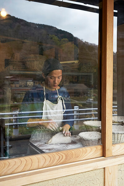 2年前に着手して今も改修中という古民家の一間に、太田さんはパン工房を設けた。山々の間から朝陽が昇るのを確かめながら、木々や畑を見渡せる窓辺で生地を捏ねる。その姿には、長年この地でパン作りを生業としてきた職人のような気概が感じられる。