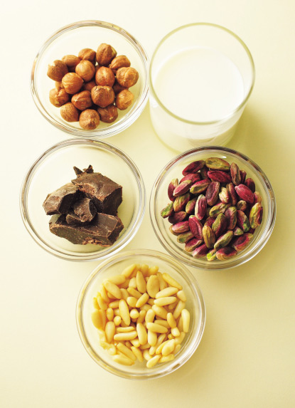 松の実はトスカーナ産、ピスタチオはブロンテ産、ヘーゼルナッツはピエモンテ産。牛乳はノンホモジナイズドの低温殺菌のものなど数種類を使い分け。「産地を知っているからこそ出せる味と思っています」