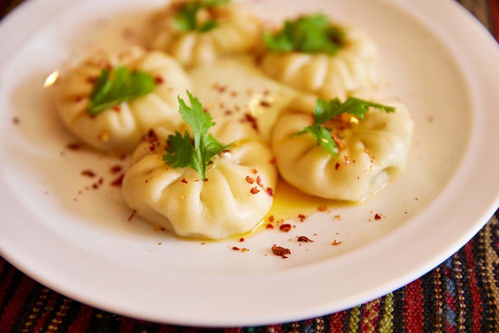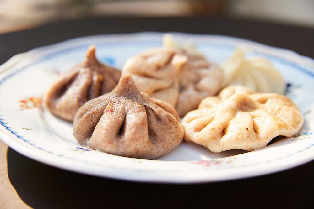 伝統的なヒンカリのフィリングは肉。尖った部分を手でつまんで口へ運ぶのが現地の食べ方。つまんだ部分は残す。と、食べた数がわかるという。