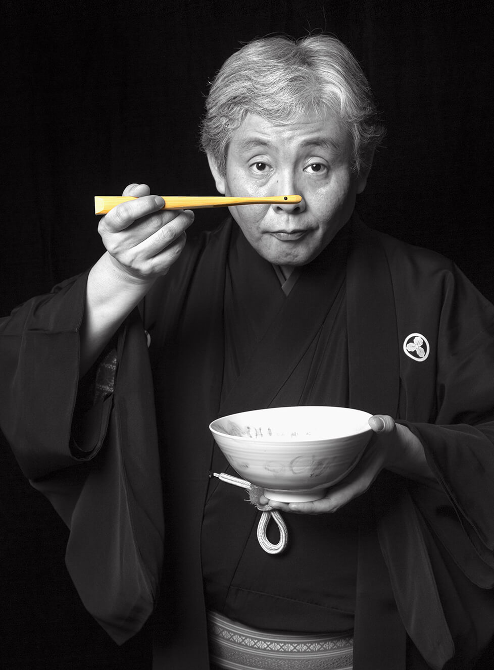 インタビューの前に行なわれた写真撮影。扇子を箸の代わりにして蕎麦を手繰る仕草に、思わず見とれてしまった。