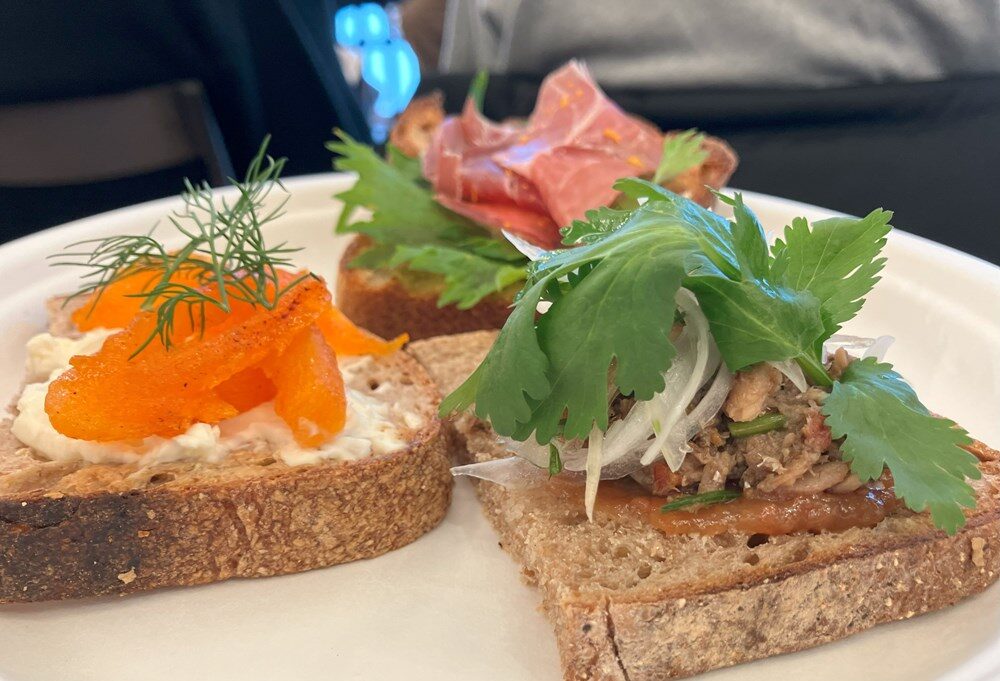 会場ではルヴァン、ドウイスト、パン屋 塩見という渋谷区内3店舗のサワードウの個性を生かした特別なトーストが振舞われた。作ってくれたのは、同じく渋谷区にあり、僕が「日本一のサンドイッチ職人」と呼ぶ、「Camelback Sandwich&Espresso(キャメルバック サンドイッチ&エスプレッソ)」の成瀬隼人さんだ。