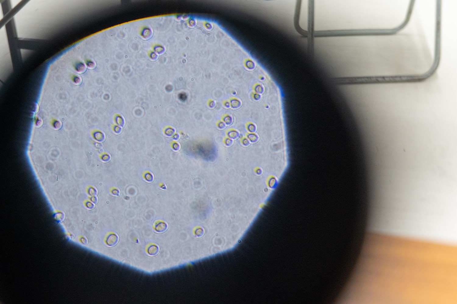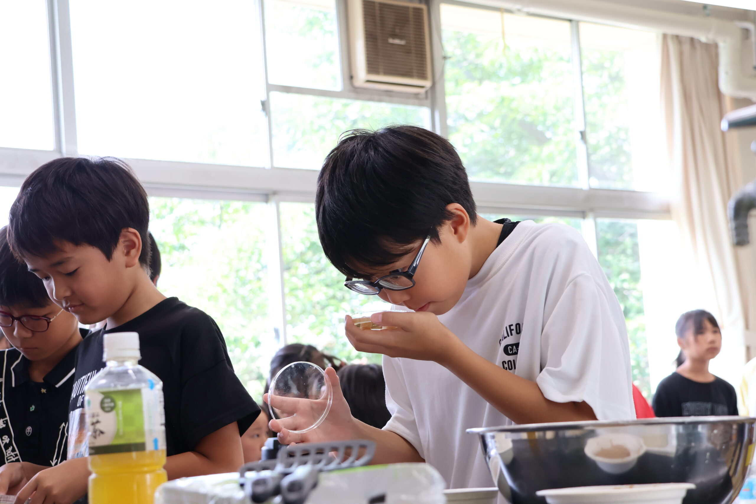 シャーレで培養された酵母は、ドーム状の1個の丸(コロニー)の中に、数億~数十億いる。子供たちが顕微鏡で観察すると、丸い形の酵母を見ることができた。シャーレの匂いを嗅ぐと、口々に「チョコレートに似てる」とか「フルーツみたい」と声が上がる。