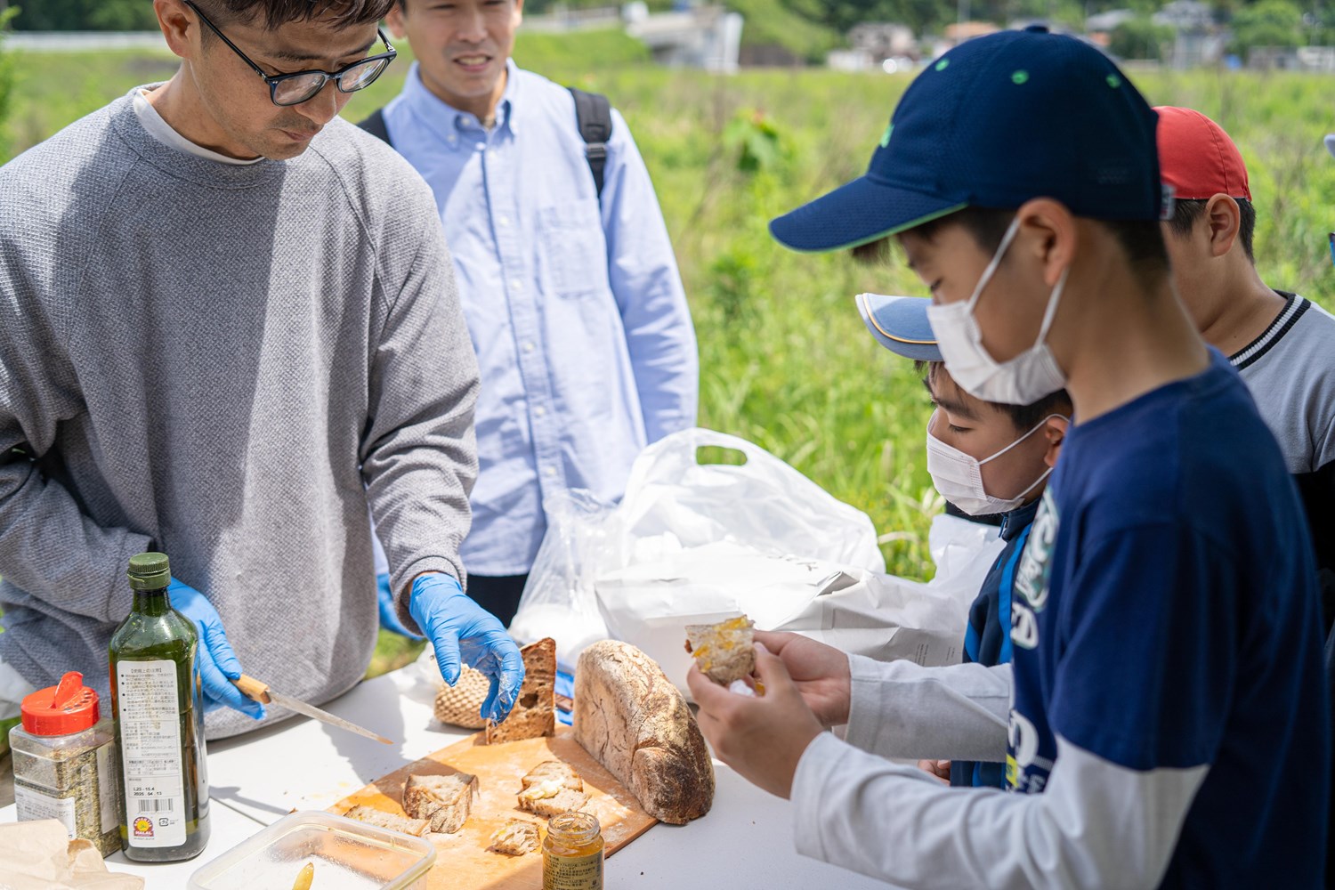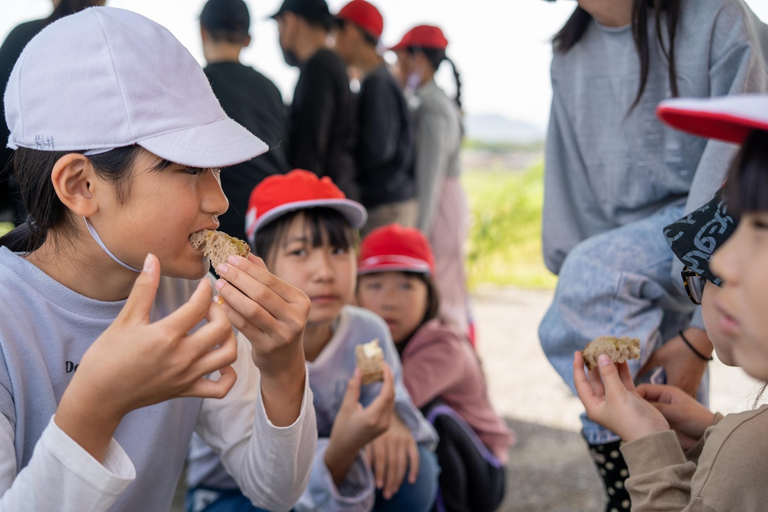 ひとしきりサンプルを採取したら、「パンストック」のパンでおやつタイム。いっぱい遊んだあと、自然の中で食べるパンは、こんなにおいしい。パンの道の駅の目指すべき方向性が見えた気がした。