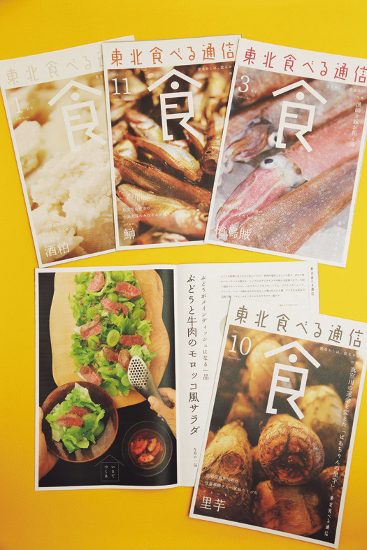 『東北食べる通信』を見たことはあるだろうか。オールカラーのタブロイド版、食べ物つきで1号2580円(送料込み)※2015年取材当時。月刊で1号で人の生産者に密着し、深いストーリーを伝え、後半ではレシピやその食べ物、地域の紹介が続く。定期購読者は1500人。2015年現在、300人が予約待ちだ。
