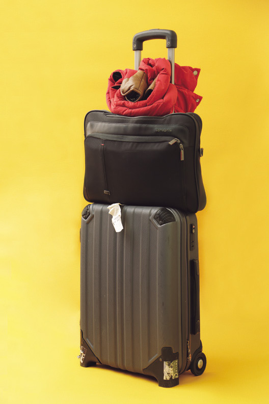 「これが僕の家です(笑)」と髙橋さん。PC関係、仕事に関係する本、着替えなど。格好はラフ、「素足が好きだから」と雪駄が定番スタイル。