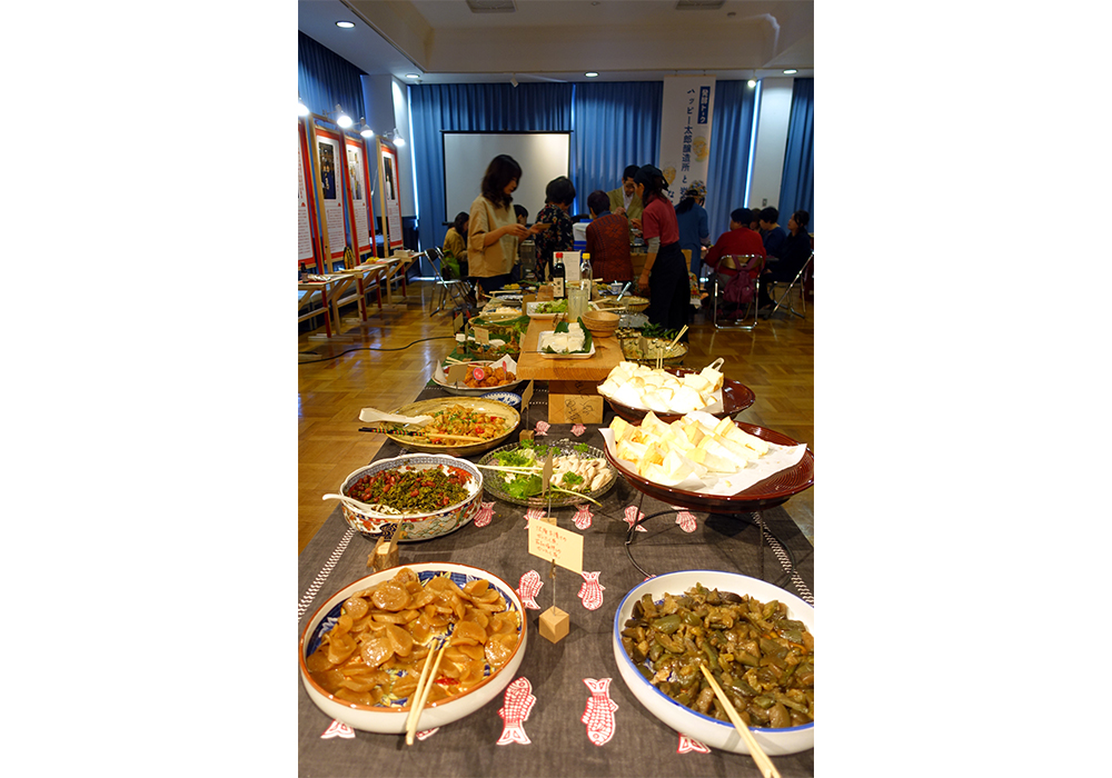 木之本で開かれた発酵イベント「オカンのツボ」ではランチバイキングも実施。沢庵の塩分を抜き、だしや醤油などで煮た「沢庵のぜいたく煮」など、この地ならではの発酵&田舎料理が30種並んだ。