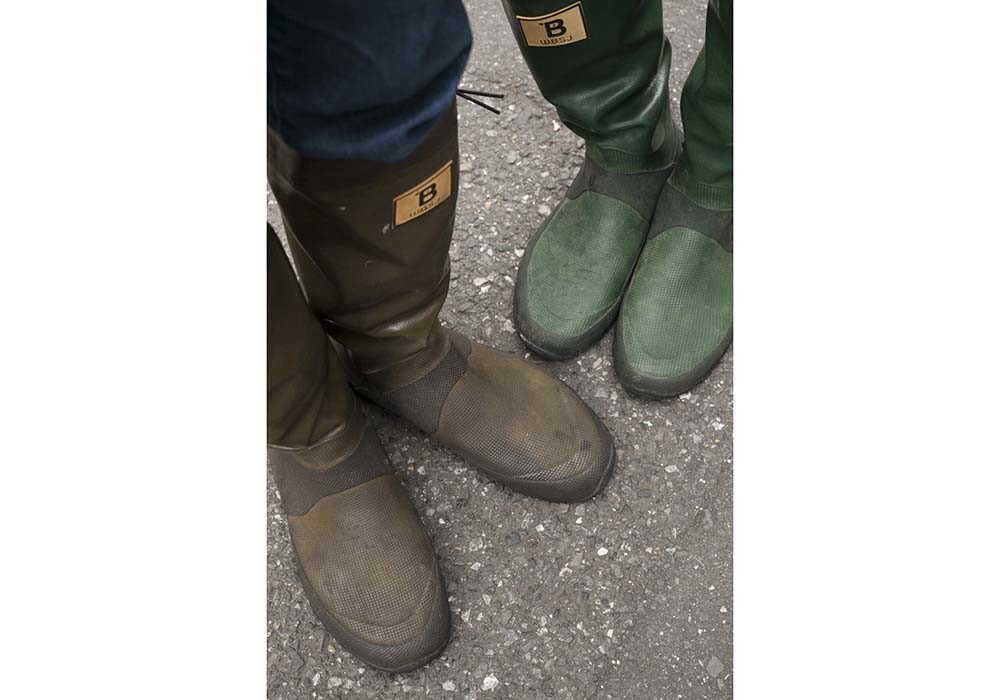 「日本野鳥の会」(野外フェスなどで、若者に人気!)の長靴。畳んで持ち運べるのが便利。ノマド魚屋必携の道具だ。