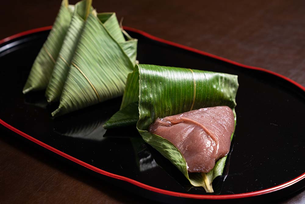 ミサオおばあちゃんの笹餅。津軽半島に伝わる笹餅は、餅であんこを包むのではなく、もち米の粉にこしあんを混ぜて餅生地を作り、笹の葉に包んで蒸しあげたもの。もっちり、なめらかな食感で、まろやかな優しい味わいだ。