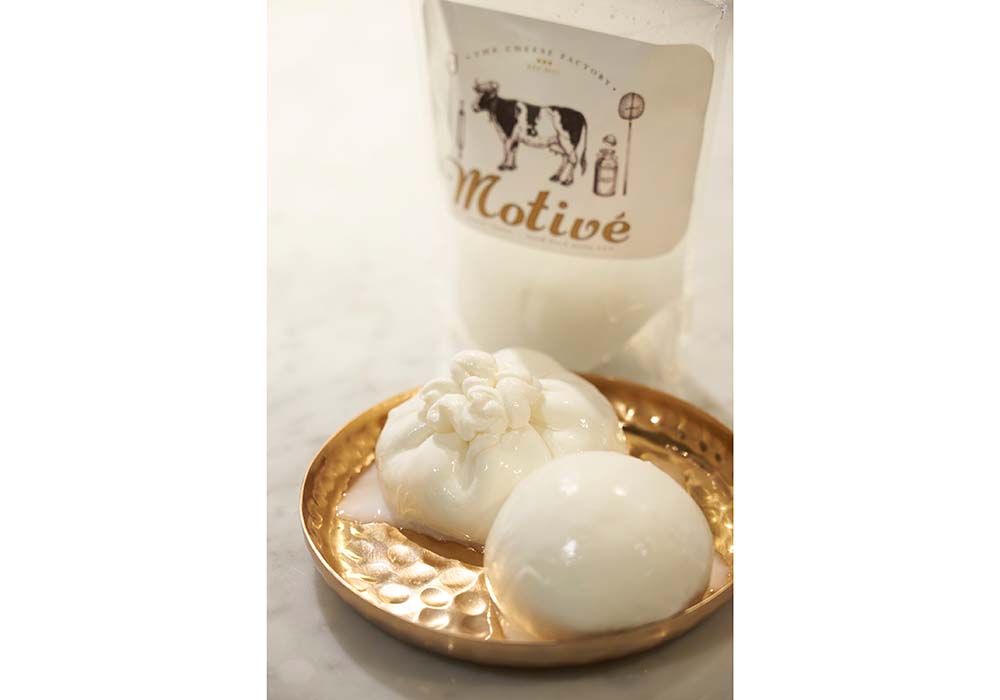 口溶けの良い仕上がりになるように研究を重ねた「モッツァレラ」と「ブラータ」。「将来的には、白カビのカマンベールタイプ、ラクレットタイプも作りたい」