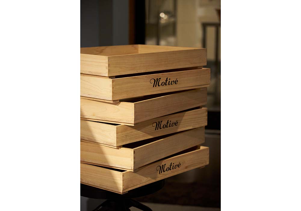 ピザ生地を寝かせる木箱。ピザボールの大きさと熟成庫のサイズに合わせて、ヒノキを用い、山口県の工房で特注した。ピッツァは常時10種類程。できたてのモッツァレッラを使用した「マルゲリータ」が一番人気。480℃、75秒で焼き上げる。2019年にはミシュランのビブグルマンを獲得。