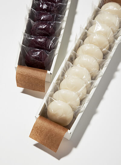 彦太郎糯は、かつて東北全域で栽培されていた幻の在来種で、地元の若手米農家が文献から発掘させた品種です。奥村さんは、この復活プロジェクトに当たり、商品化を手掛けました。この糯米で、紅白の丸餅を作ったのです。