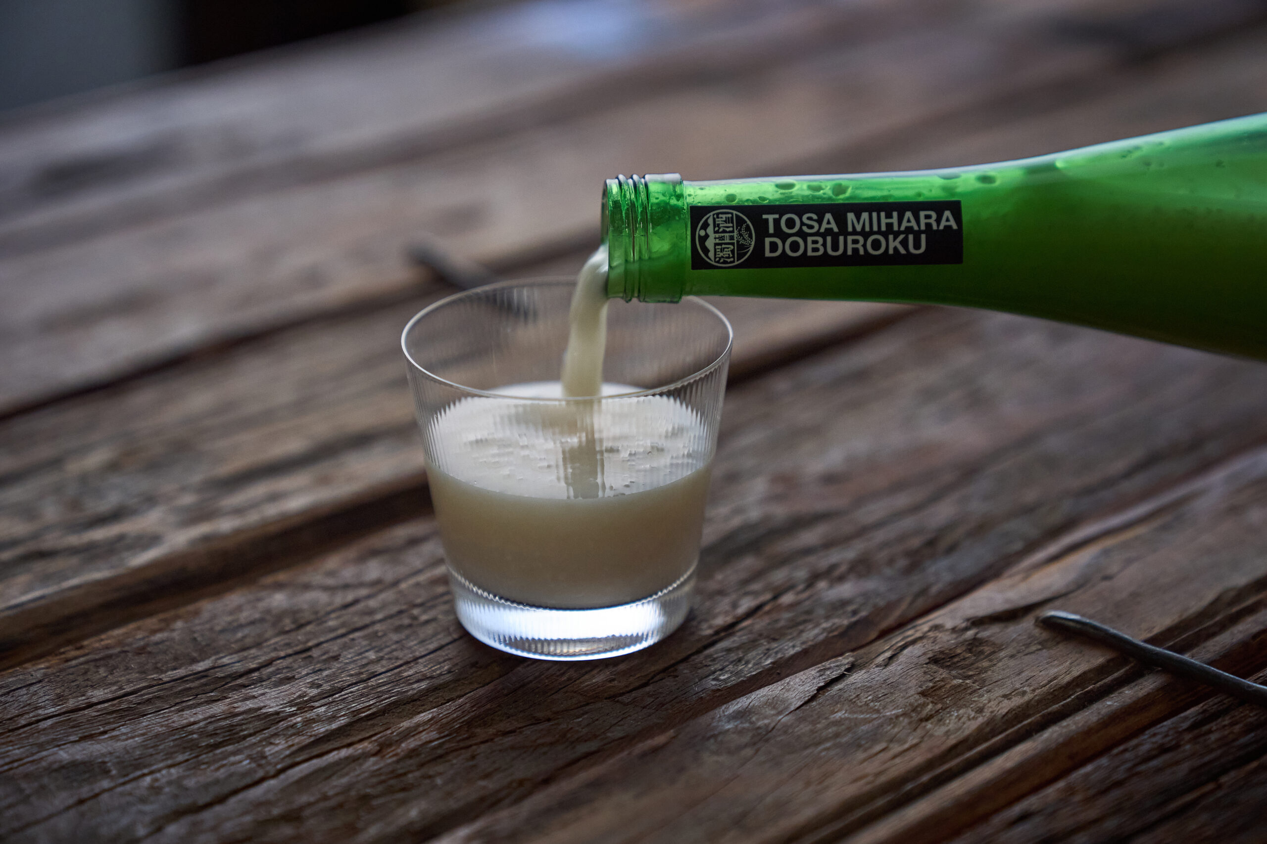 土佐三原村合同会社のどぶろく。どぶろくは、お酒、米麹、水を発酵させ、もろみをこさずに作るお酒だ。仕込みは、年間を通じて行われる。「保存の期間によっても味が変わる。まだ味が若いと思ったら、少し寝かせて。1〜2年寝かせて、古酒になったどぶろくも、また違った味わいが楽しめます」