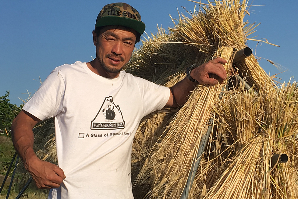 美しい棚田で知られる静岡県富士宮市柚野に生まれ育ち、高校卒業後はLPガス関連の事業を営む。子どもが生まれたことをきっかけに農業を始め、害獣問題への関心から狩猟免許も取得。2017年、農業生産法人・株式会社FARMENTを設立し、「フジヤマハンターズビール」をオープン、ビールを通じた社会課題の発信を目指す。ビールの原料は自家栽培の大麦やホップをはじめ、ほとんどが地元産。檜の間伐材やニホンミツバチの蜂蜜、旬の果物など地域の資源を生かして造る。「Brewing for Nature」を主宰するなど、ブルワリーや飲み手の間で問題意識を共有する輪を広げている。