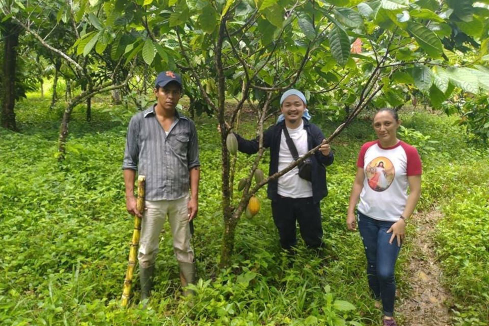 自分たちが望むクオリティを伝えて、そのための技術を伝授して、質の向上を図ることで、彼らの暮らしや社会的ポジションの向上に寄与したい。ニカラグアでの発酵実験中。カカオの実の断面を見ながら発酵具合を確認する。