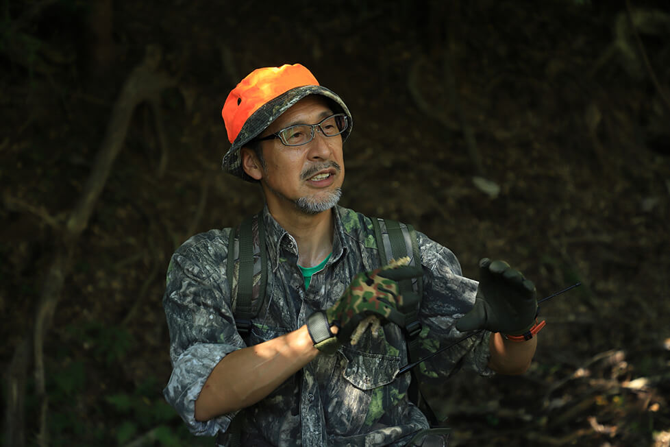 森の動植物の生態を全身で感じ取る。小野寺さん自身が森の生きものの一員だ。
