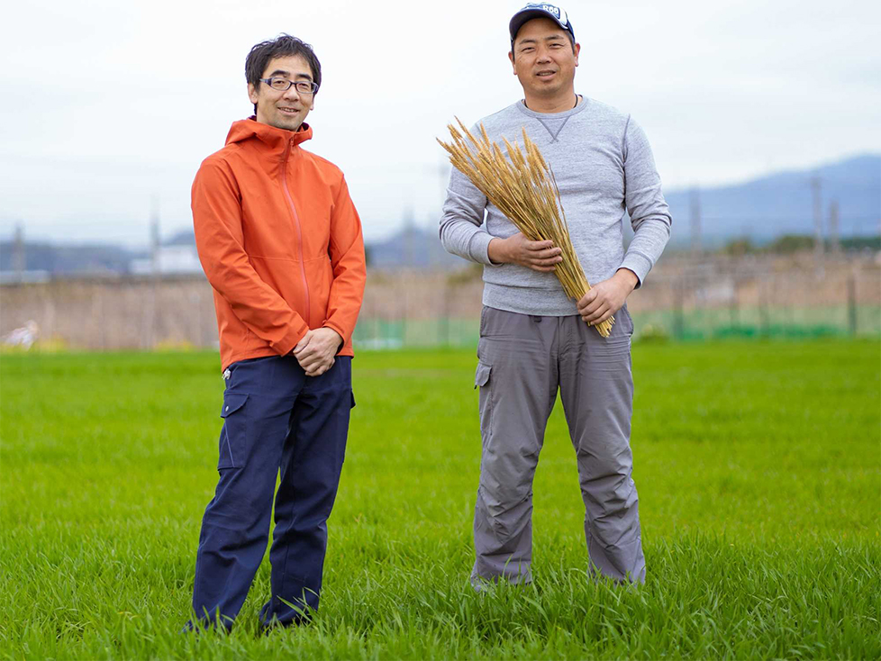 *トップ画像左。右は、桑名もち小麦の栽培と普及に共に取り組む「今安ライスセンター」の伊藤宏幸さん。