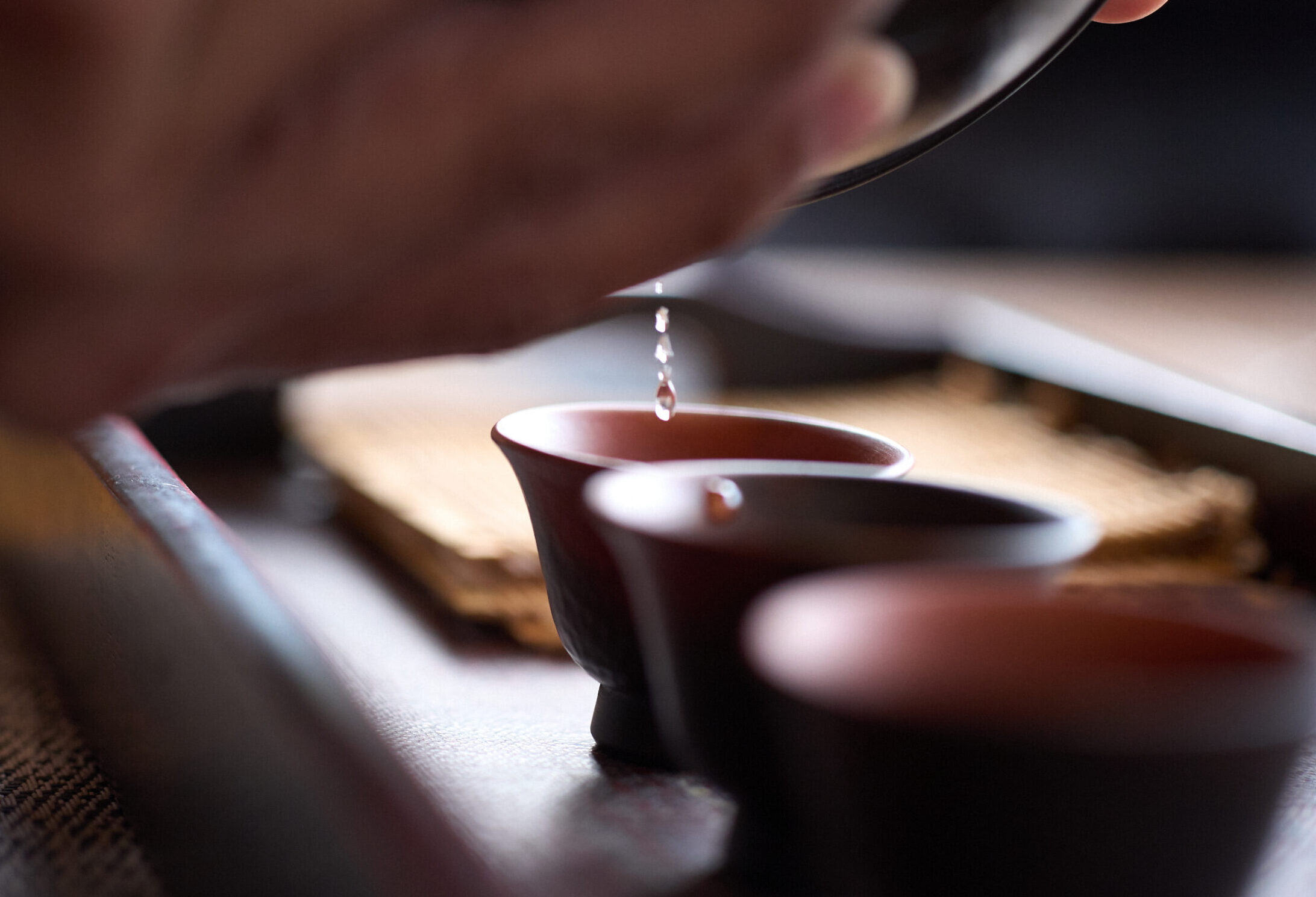 湯は茶器の縁から少量ずつ注ぐ。
