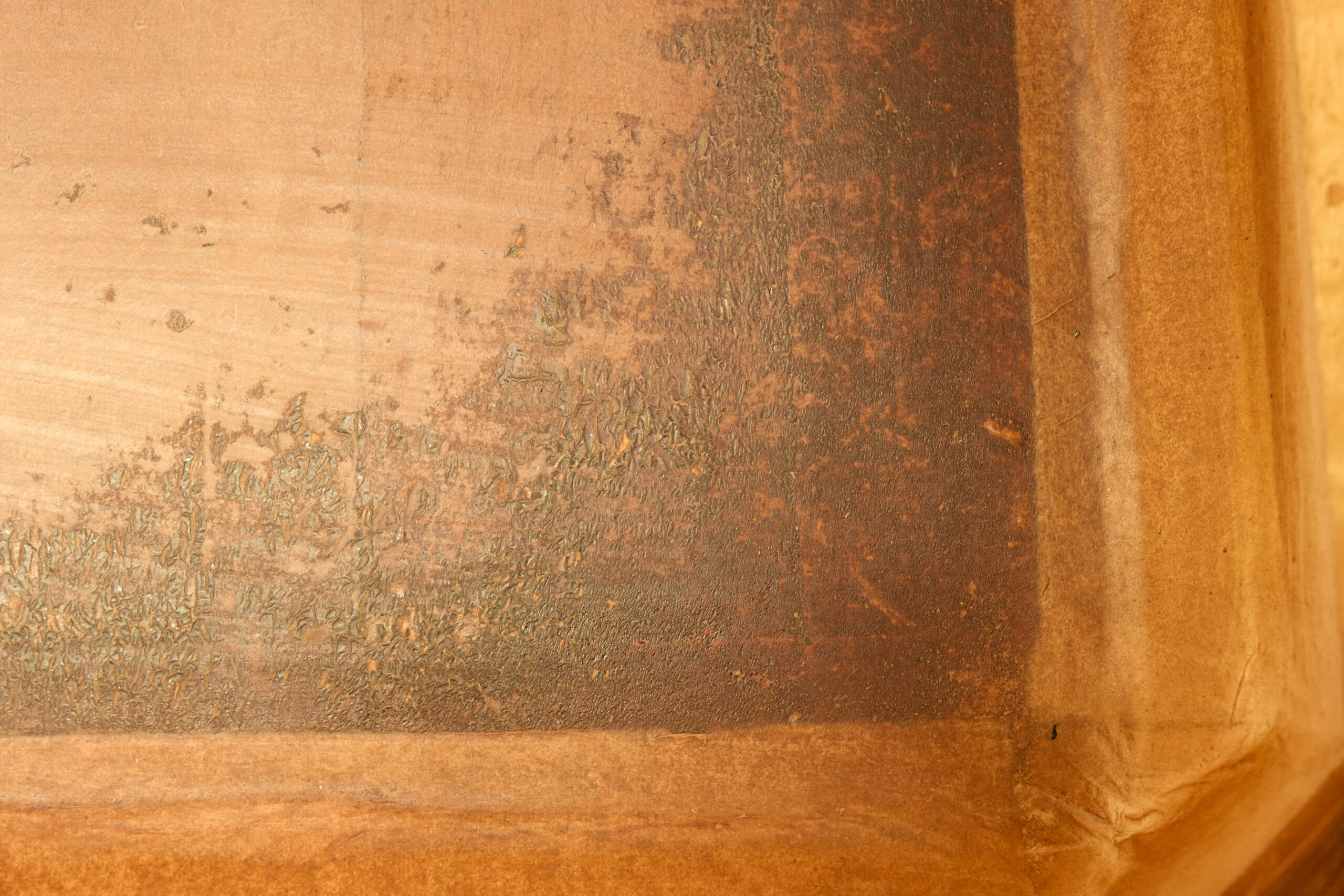 2010年に貼られた使い込まれた和紙。継ぎ目が全くわからない。中心部分の表面はまるでガラスのようにツルツル。