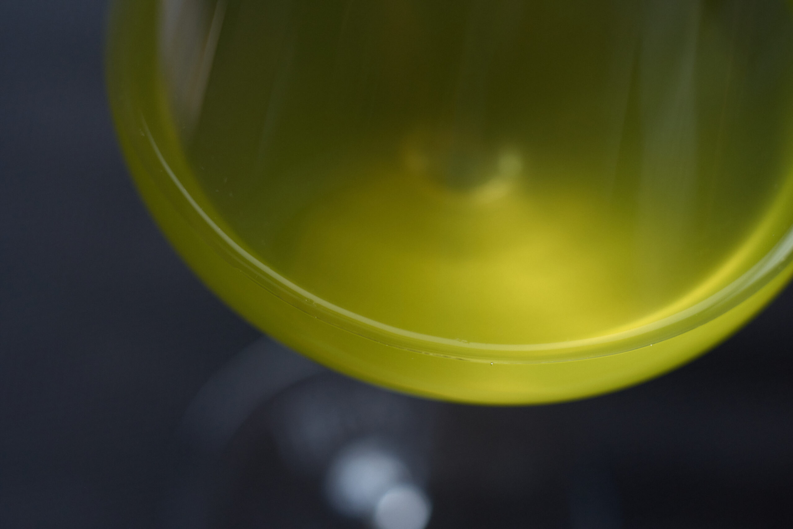 狭山豊香茶(さやまかおり)。通常の水出しよりもさらに低めの約3℃の水で一晩抽出。ペアリングの中で一皿目のシグニチャーディッシュ(前出)に合わせた、一番旨みのおだやかなお茶。繊細な旨みと華やかな香りを、大きめのワイングラスで楽しむ。