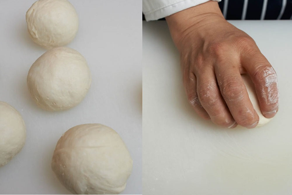 生地がひとまとまりになったら止める。手で生地を丸める。