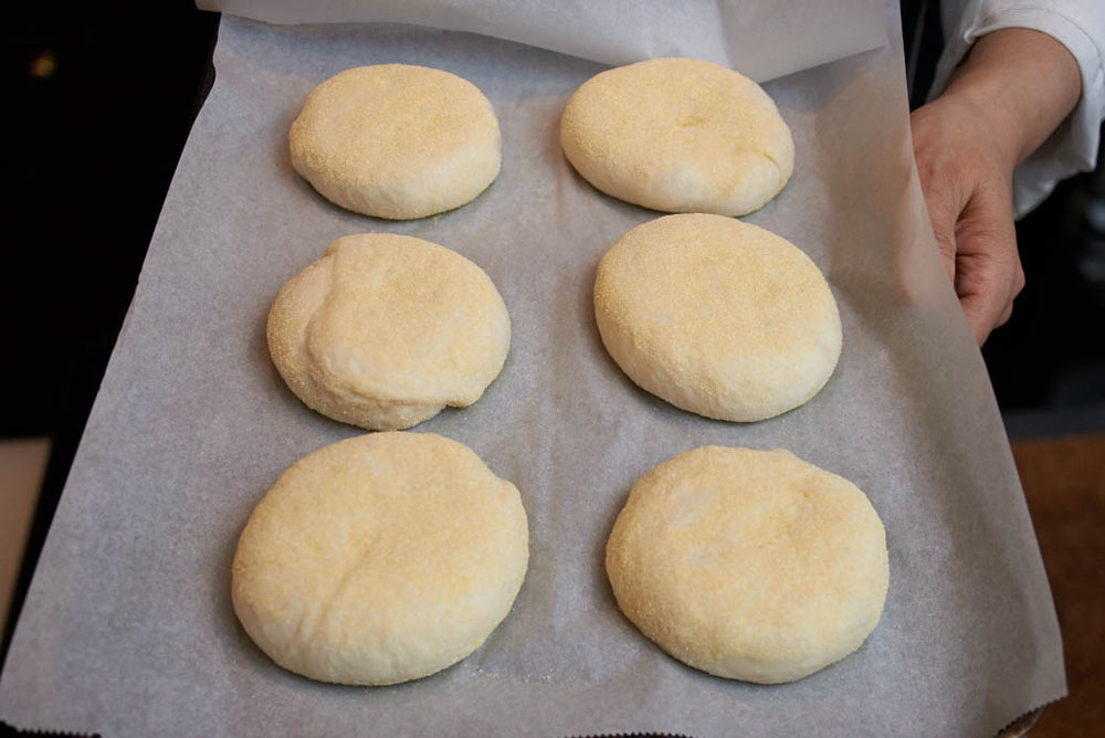 店では、ピタパン、バゲット、カンパーニュ、クランペットなど様々なパンを手作りするが、イングリッシュマフィンは作っている最中から、他のパンに比べてどこか「めんこい」のだとか。