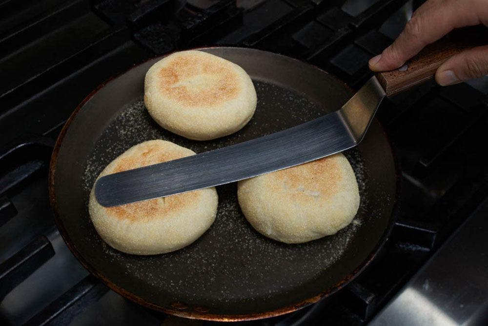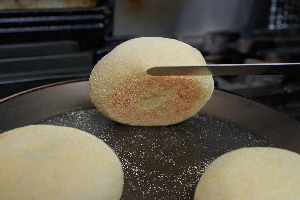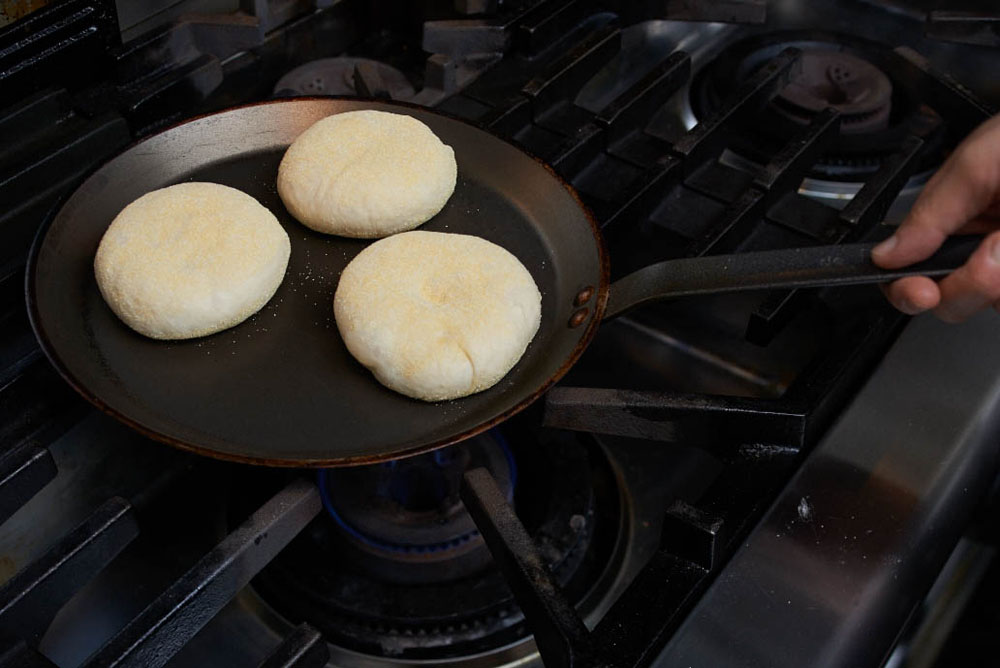 最初はセルクルを使ったり、オーブンだけで焼いていたがうまくいかず、いろいろと調べた結果、フライパンで焼く方法を見つける。こうして理想通りのイングリッシュマフィンが完成した。