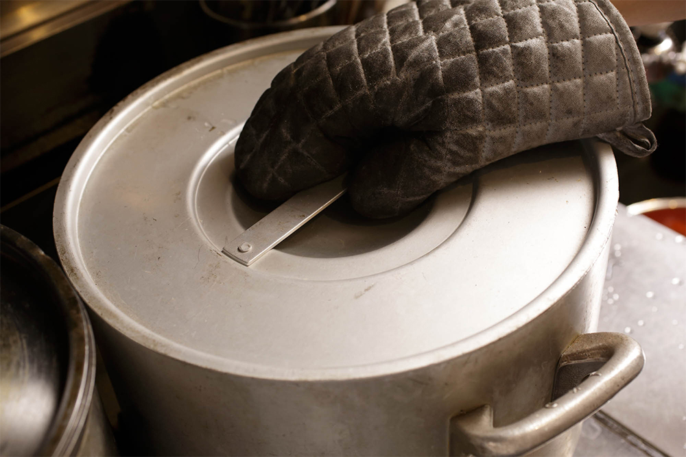 夏になれば、トマトがひたすら、大量に届くことも。お店で使いきれず、必要に迫られて作り始めたのがトマトの水煮です。トマトの皮を湯むきする作業がちょっとした手間ですが、それさえ済ませれば、0.7%の塩水に浸け、湯煎で煮るだけ。シンプルな手仕事です。