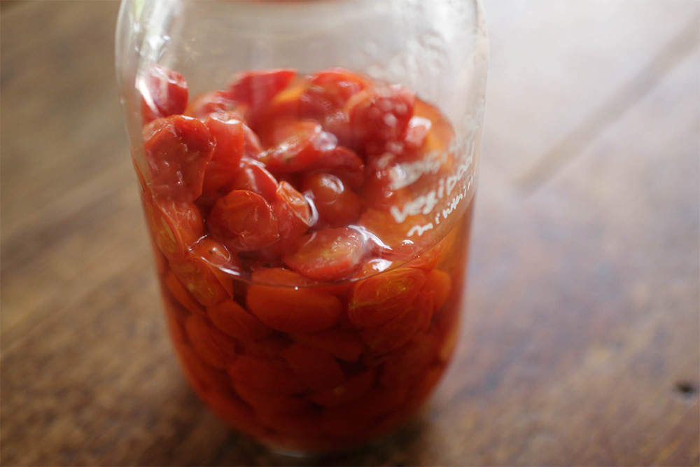 POINT:瓶の口に水滴やトマトを付けないこと(腐敗を防ぐ)。