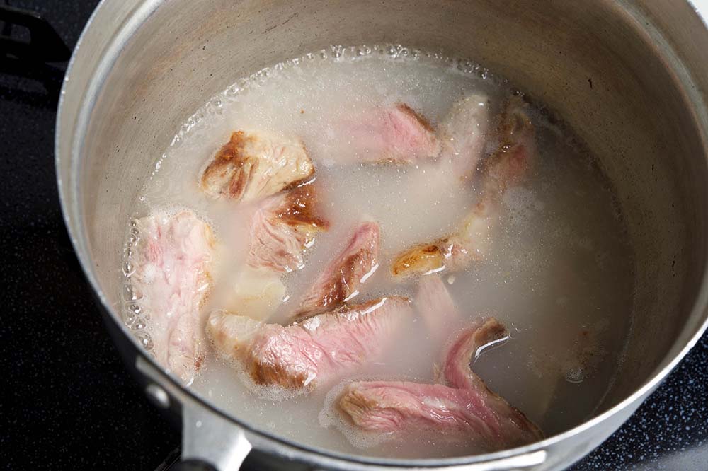 ココナッツミルクを使う料理の場合、液体分で具を煮る。