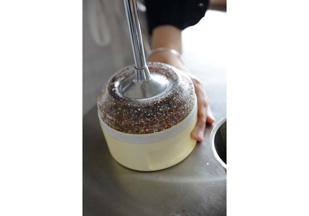 POINT: 2週間後、一旦開けて混ぜて味を見る。この段階では、辛さが強め。まろやかに仕上げたい場合は、さらに2週間ほど保存。