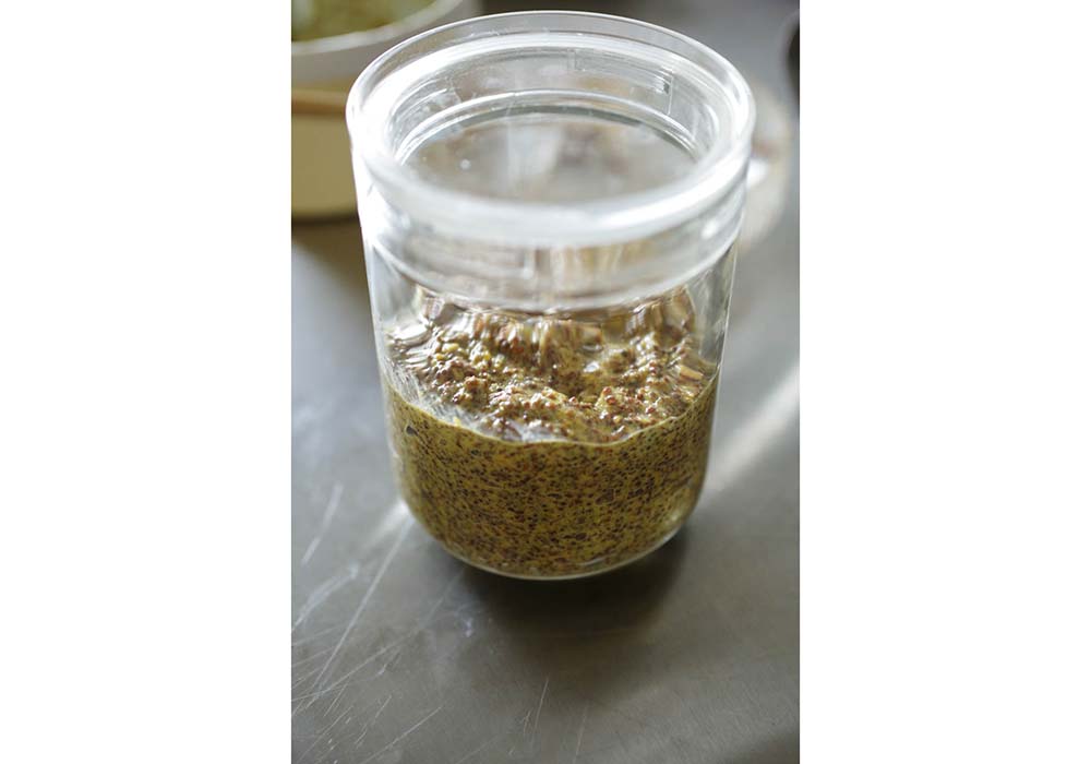 寝かせている間、マスタードは水分を吸って膨らんでくる。ビネガーの量で食感も変わるので、とろりとした状態に仕上げたい場合は、大さじ2~3くらいのビネガーを加えておくといい。