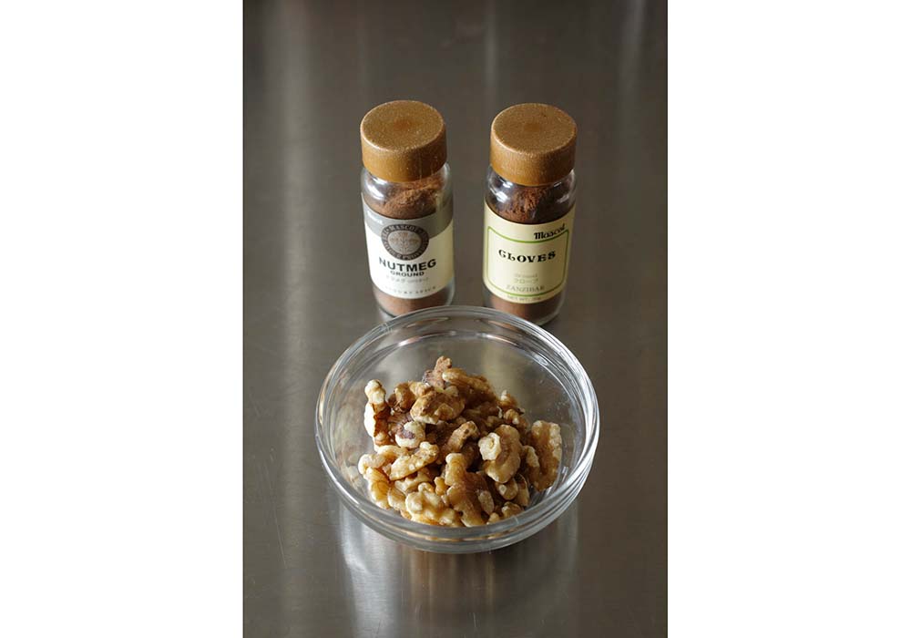 スパイスは、色を加えるという意味でもターメリックが基本にはなりますが、ナッツメグやクローブなど、味を深めるのにいいスパイスもあります。他には、クルミやアーモンドを一緒に砕いて加えても。料理の幅が広がる調味料というより、より単純な料理で満足できるのがマスタードの効果です。