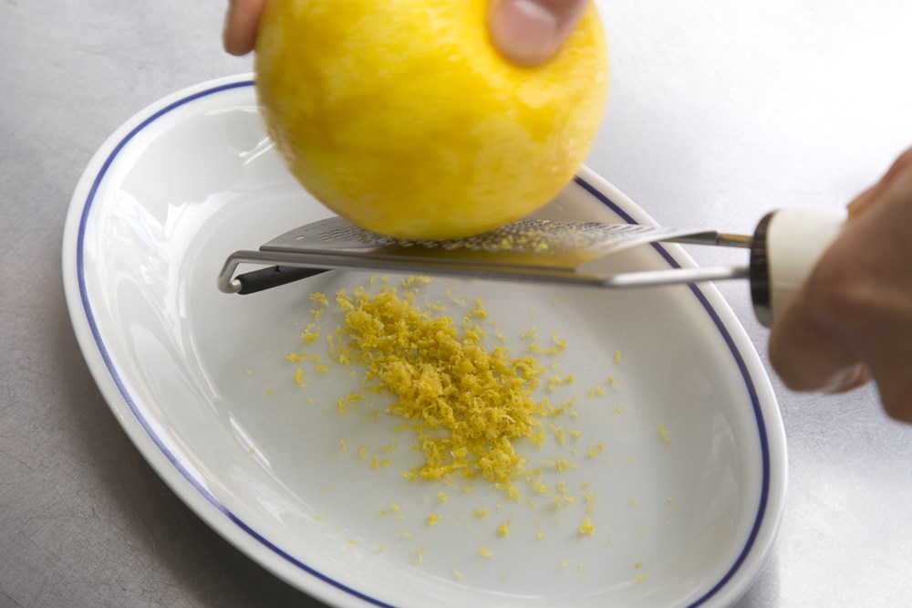 河内晩柑は水でよく洗い、おろし金などで皮をすりおろす。