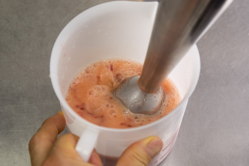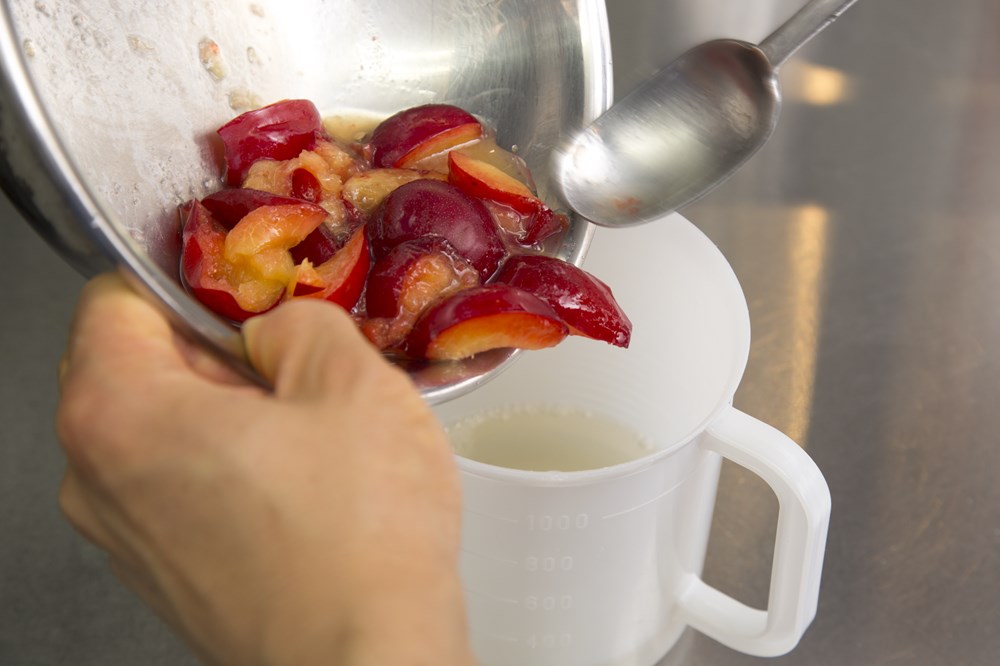 残りのプラム(125g)と2を容器に入れてミキサーにかけ、ジュース状にする。