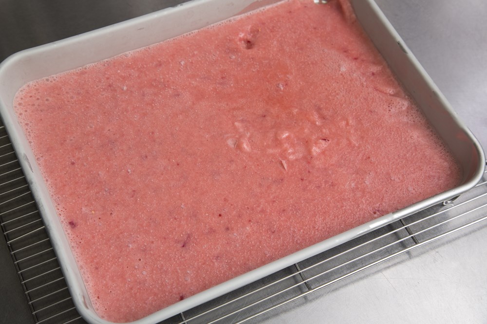 フルーツ使いに優れたパティシエに、「糖」と「火」で引き出された果実の持ち味を生かすテクニックを教わります。今回は、グラニータの作り方。