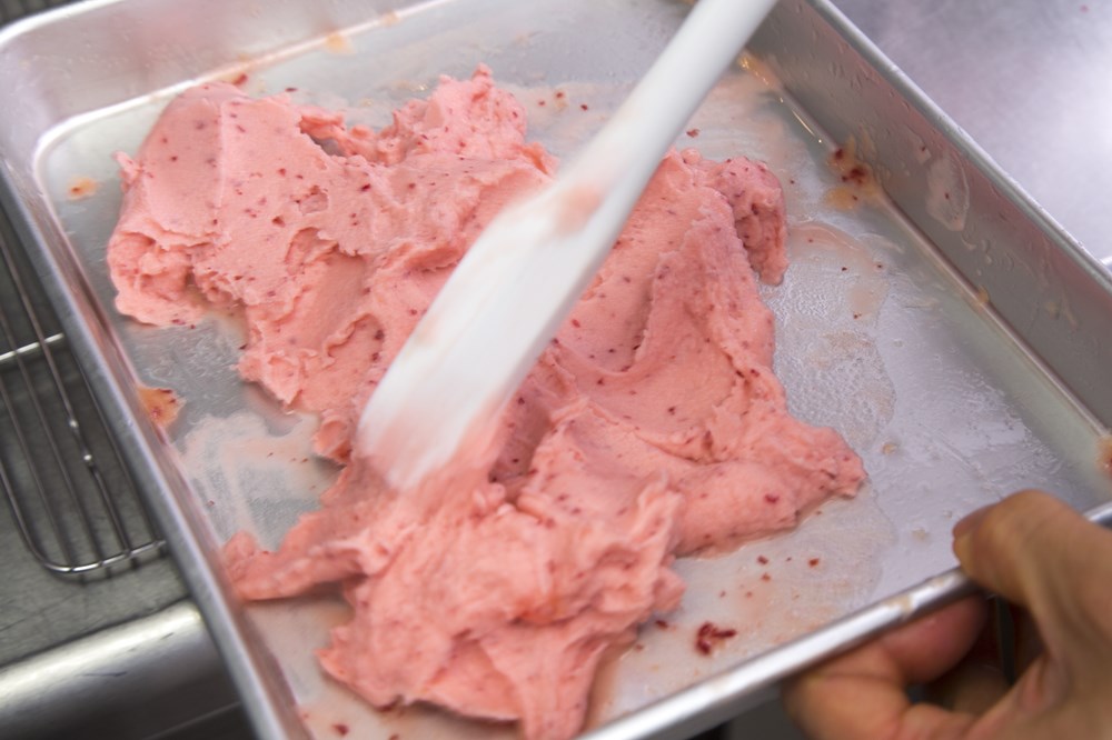 冷凍庫に入れて完成。ディッシャーなどで器に盛りつける。