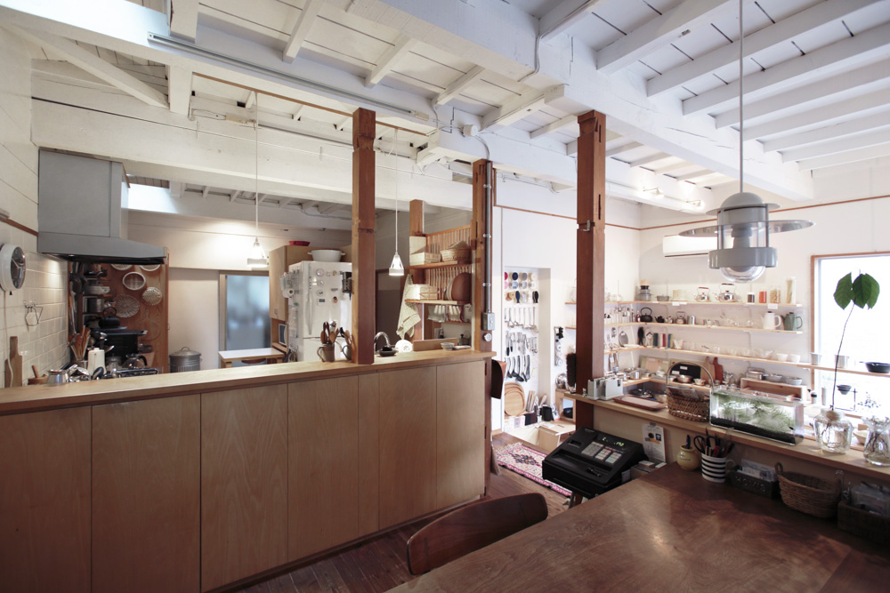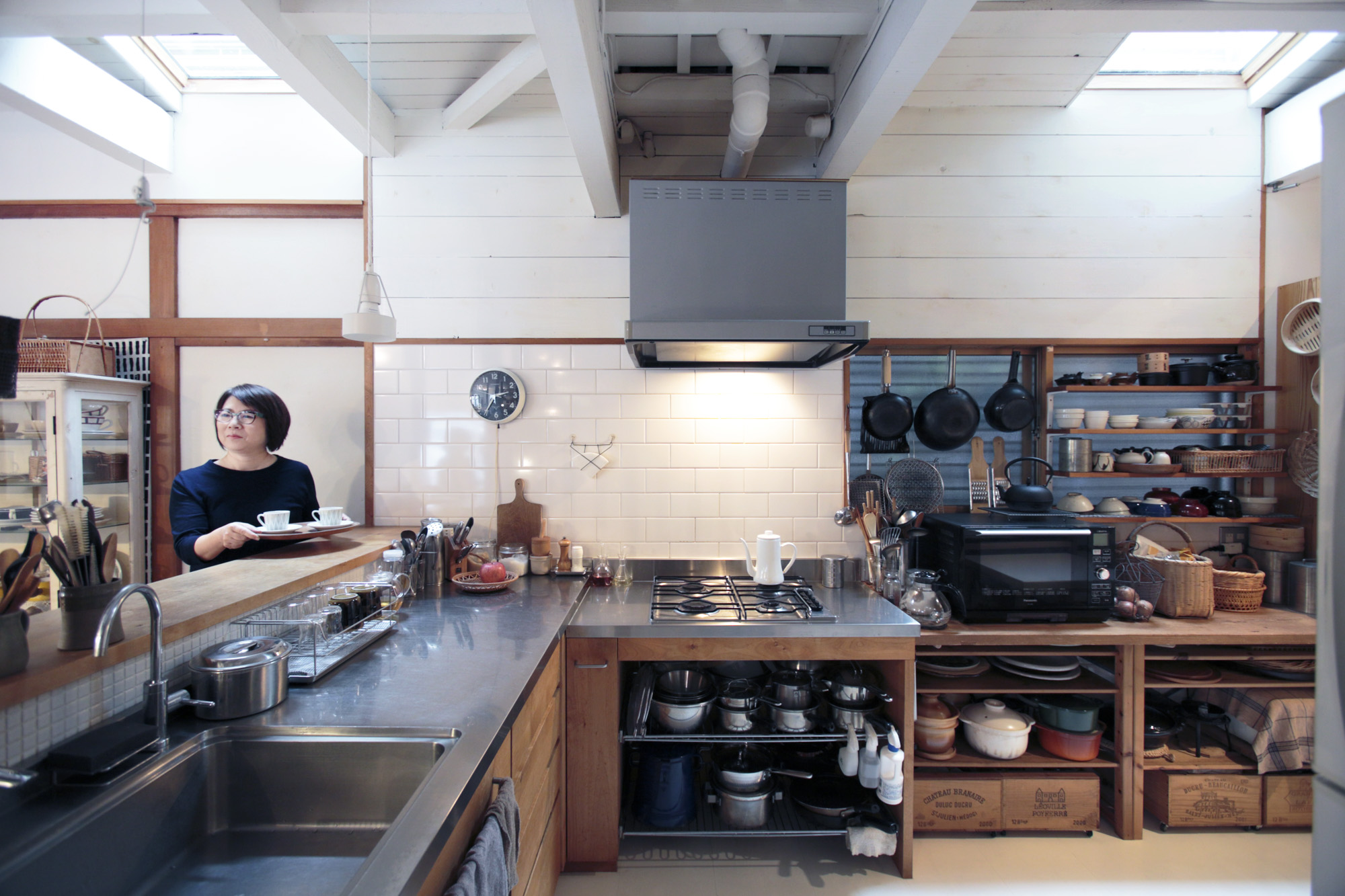 「リビングだった部分を店に改装したので、ここが我が家の台所です。使い勝手本位の道具を紹介する以上、試していただける場所があるほうがいい。丸見えになってしまうけれど、割り切ればいいかな、と思って」
