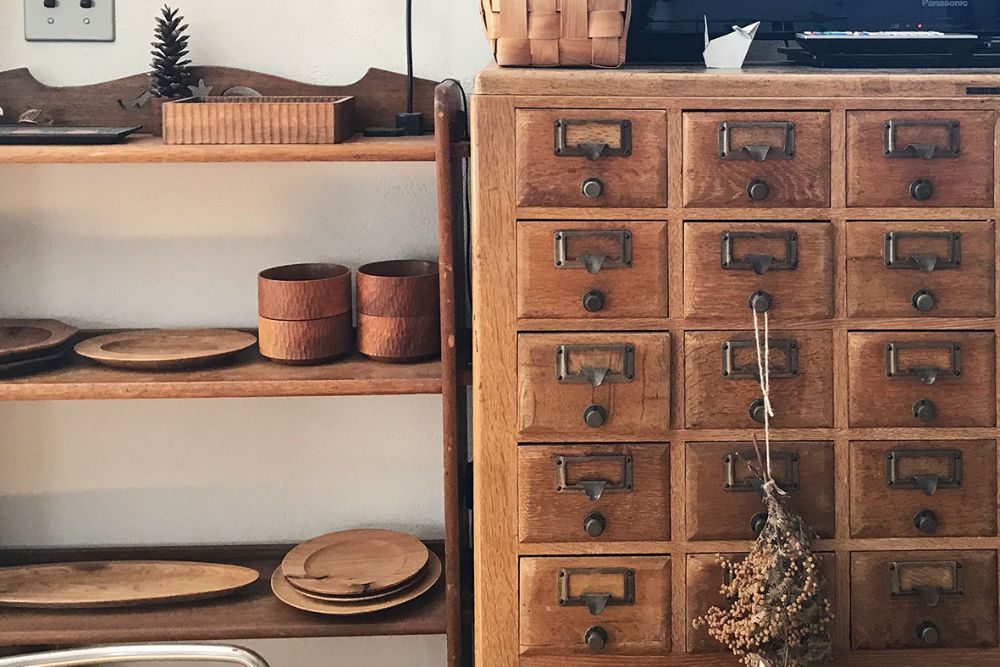 空間全体として採光は控えめで、森のなかのような柔らかく落ち着いた明るさに満たされ、白壁と木の温もり、アンティークの味わいが、訪れる人をほっとさせる。塗り壁に使われているゼオライトの効果か、真夏でも涼やかだ。娘のふうちゃんは2歳半からコーヒーを淹れ始めた。