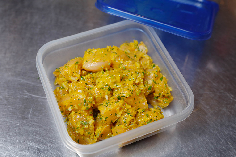 保存容器に移して2時間、冷蔵庫でマリネする。