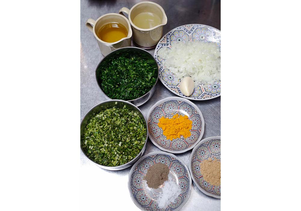 イタリアンパセリ、パクチー(みじん切り)、オリーブ、塩……各適量
