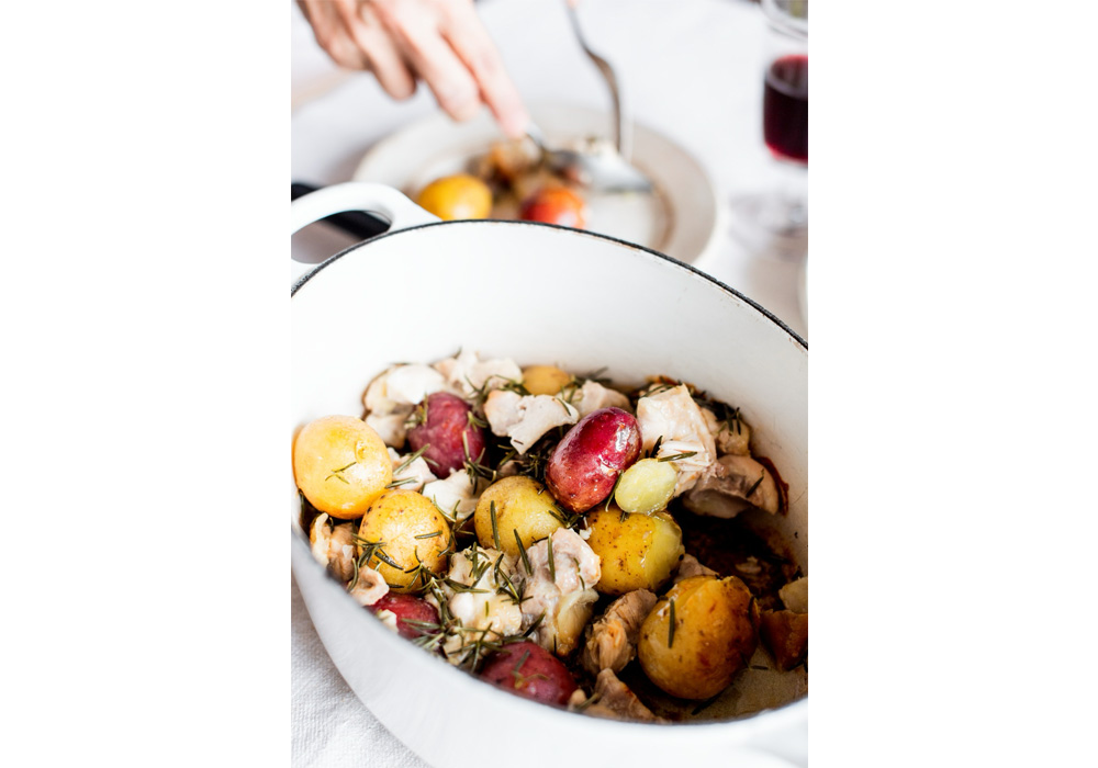 〆まで旨い。火にかけるだけで完成する「鶏とジャガイモのローズマリー風味焼き」
