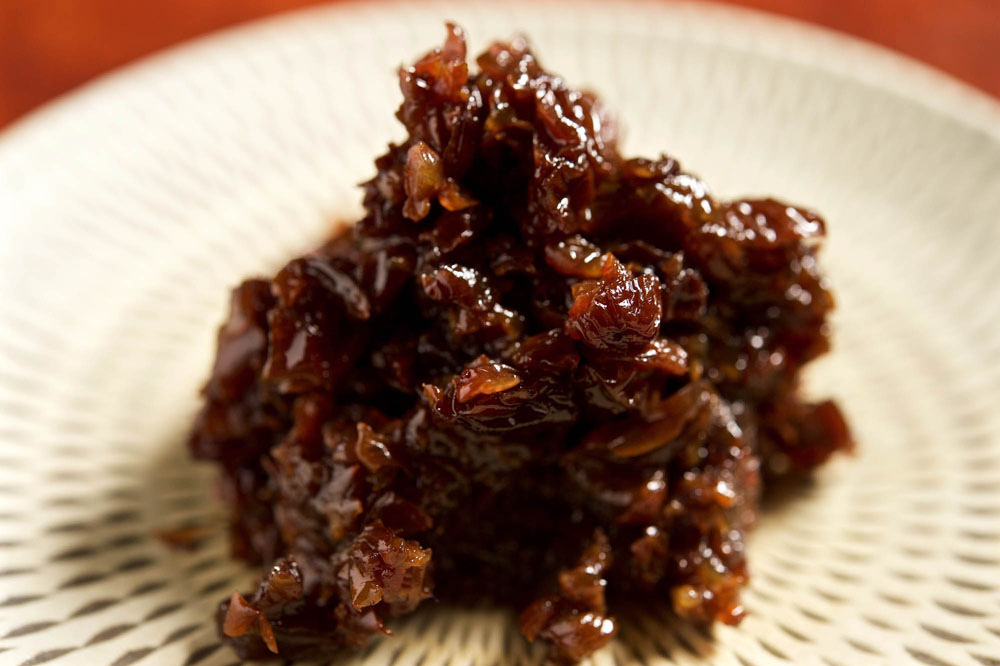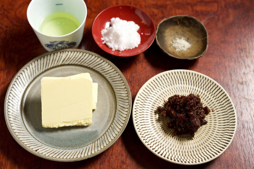 和の味わいを主軸に据えた「にほん酒や」ならではのレーズンバターです。酒粕再発酵酒は入手が難しいので、5年以上熟成させた濃いタイプの日本酒であれば代用可能です。贅沢ですが、「秋鹿純米古酒2000年」で漬けると、爽やかな後味に仕上がるのでおすすめ。もし、熟成酒でもコクが弱いと感じたら、みりんを足してみてください。