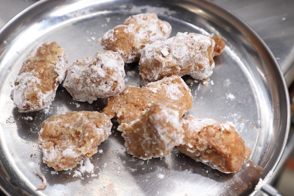 再び片栗粉をまぶし、180℃の油で表面がカリッとするまで揚げる。